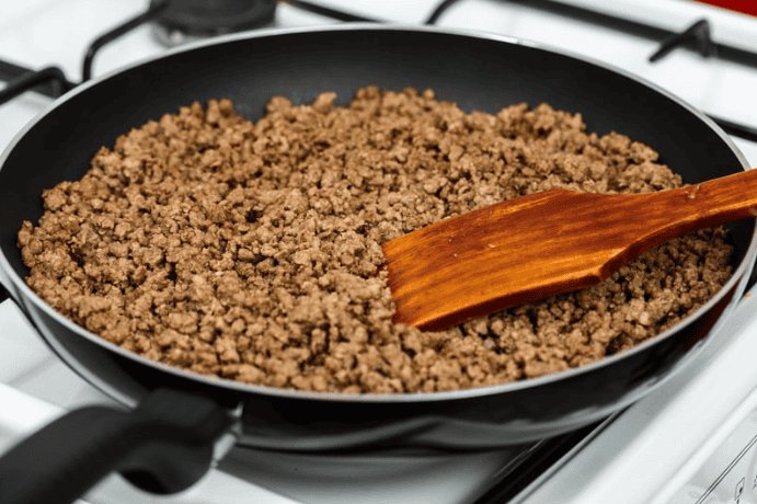 Turn the heat up to medium-high. Add the mince and break it up with a wooden spoon. Cook for 6–8 minutes until it’s browned and any liquid has cooked off.